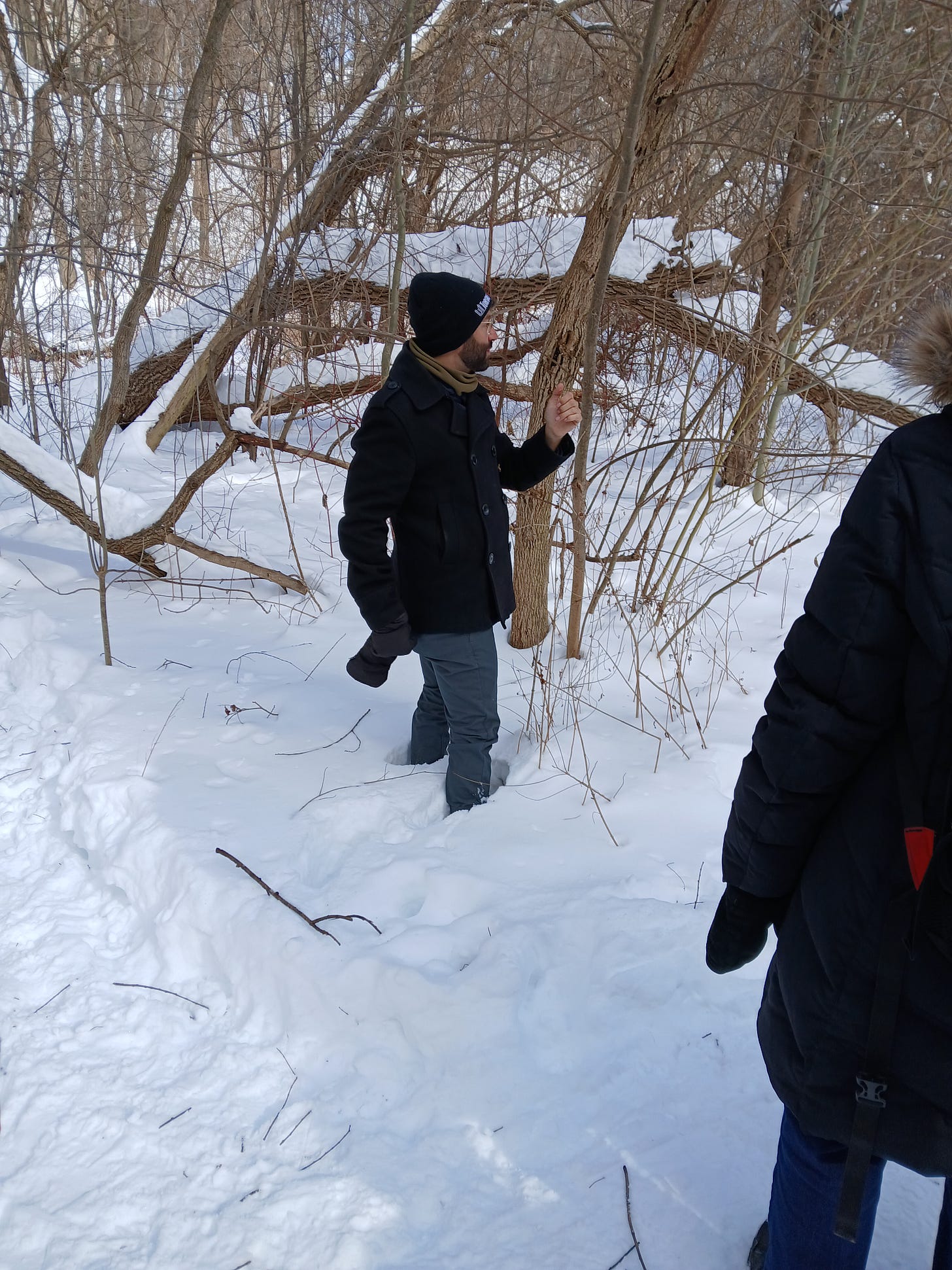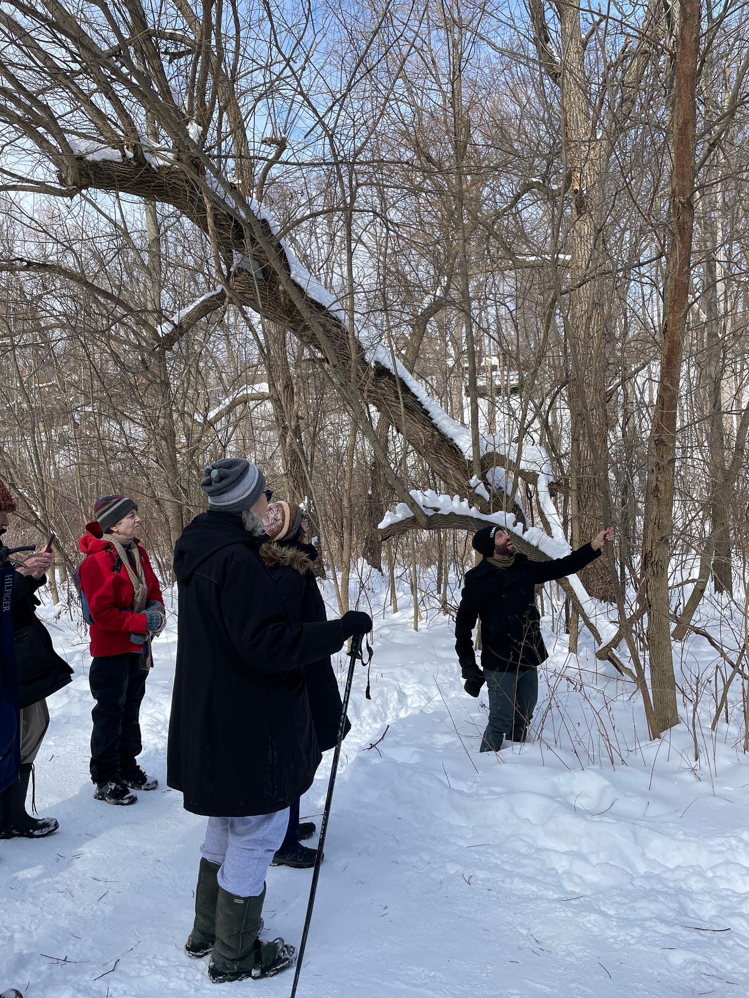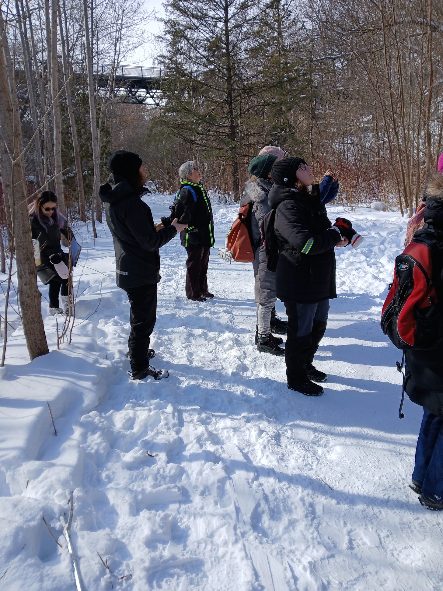 There were 12 of us in the group. Mark and Lan took us south through the ravine section of the park, almost to the Heath St entrance, and back again. They only made a few stops, as the weather was sunny but too cold for standing around for long.The tour lasted an hour and a half.