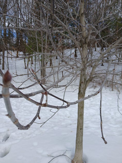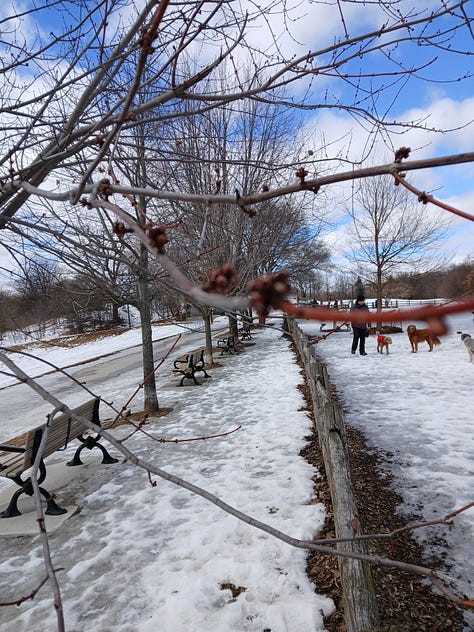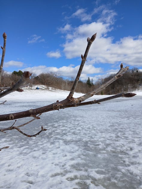 Here are some photos of buds in the park. taken on 7th March (you can see the icy conditions):