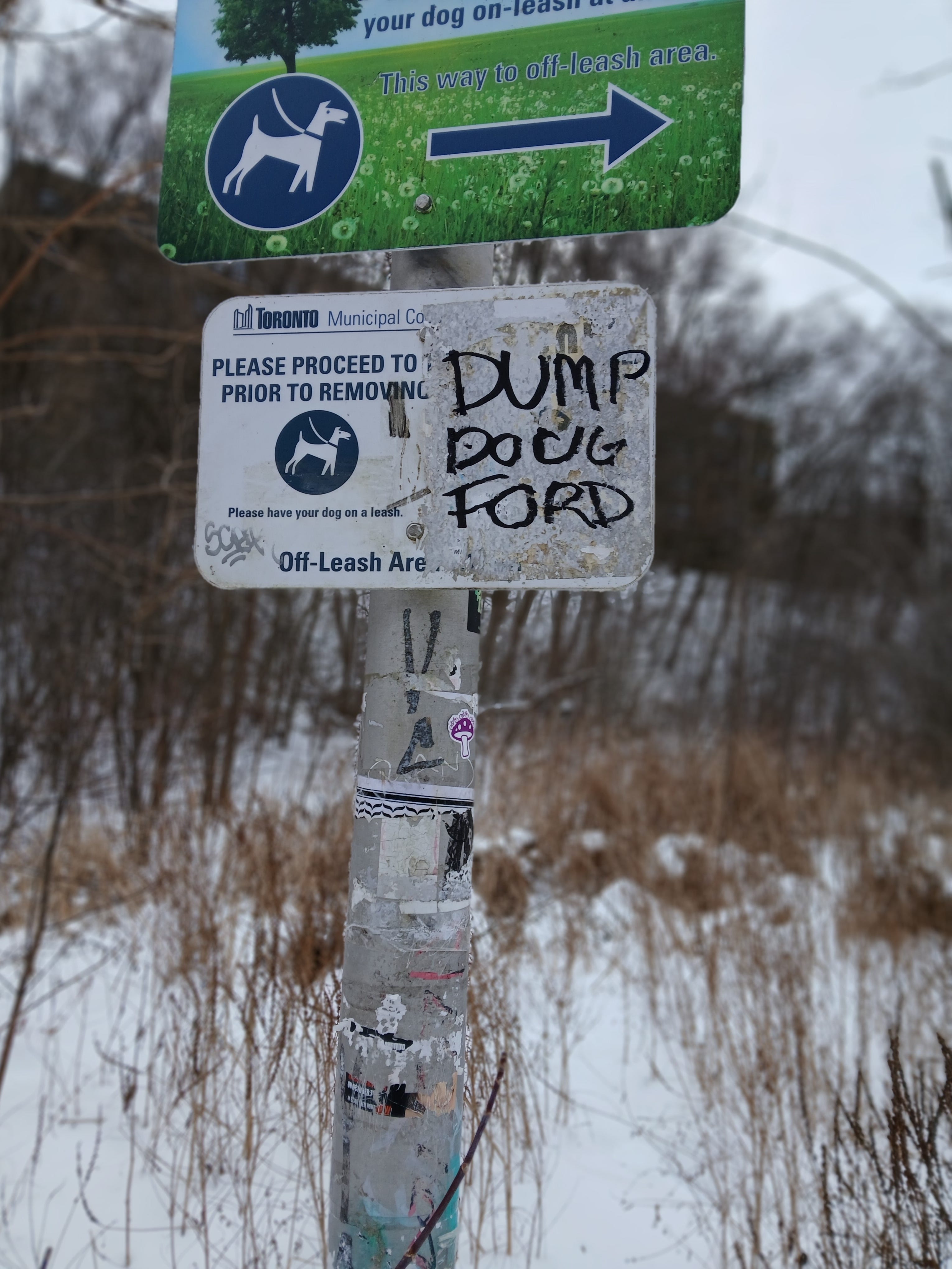 We were reminded that a provincial election was in progress by the graphito on this sign: