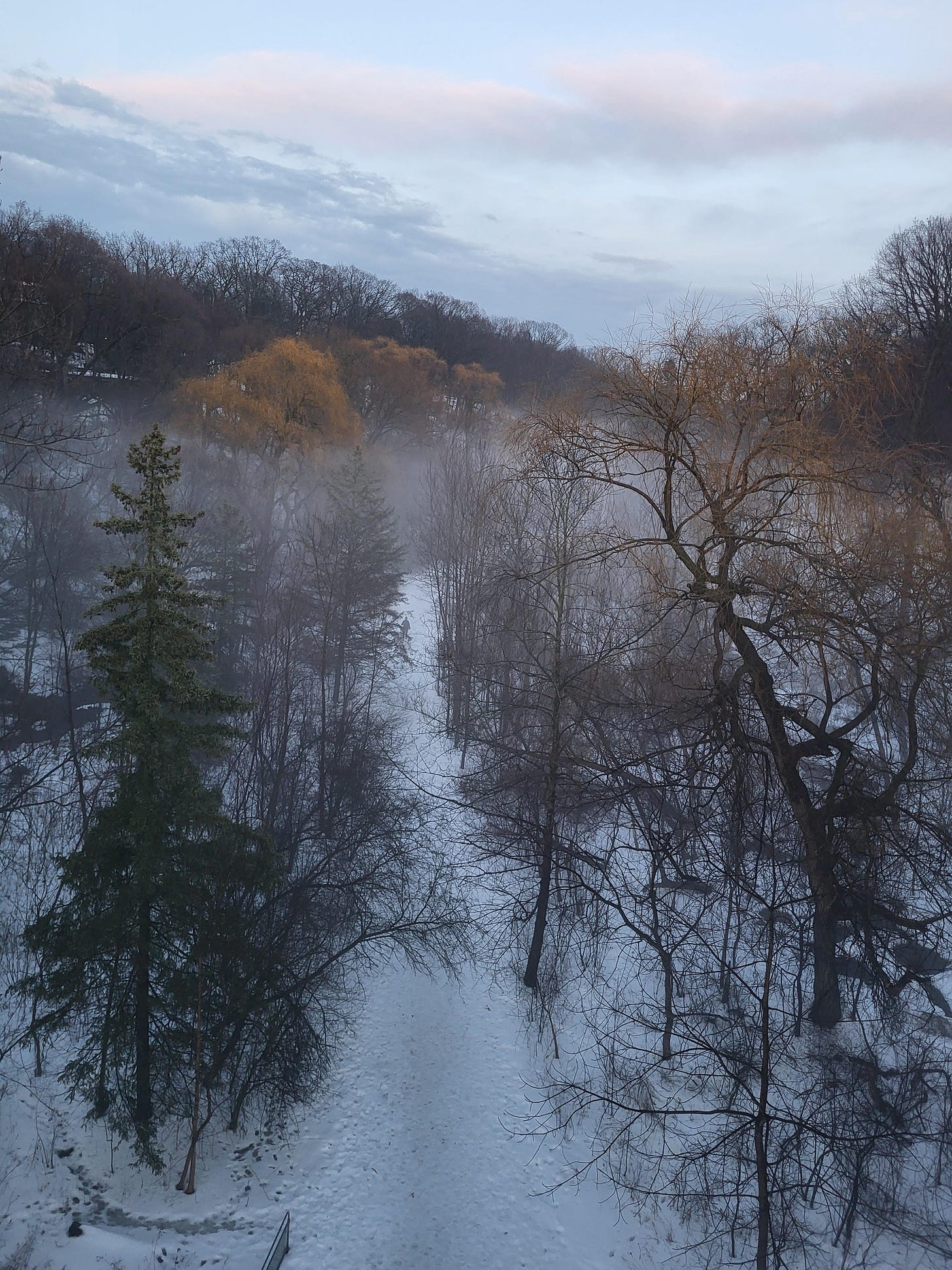 My friend Rona MacDonald, sent me some photos of the fog in the ravine on 5th March. This is looking south from the Glen Cedar footbridge: